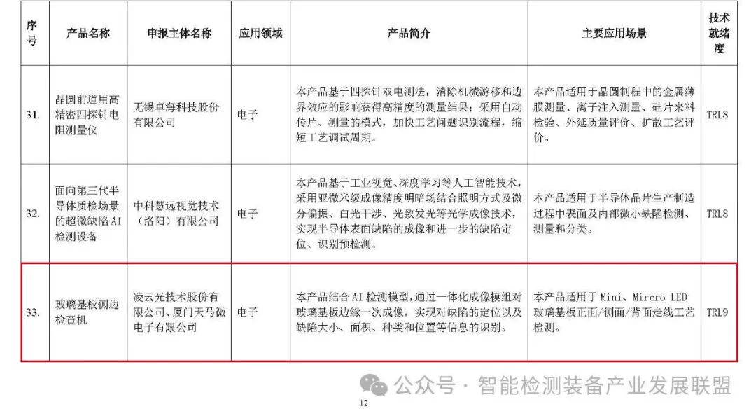 3月21日,工业和信息化部装备工业一司指导、智能检测装备产业发展联盟组织遴选的《智能检测装备创新产品名录(第二批)》名单公示,由凌云光和合作单位共同研发的《玻璃基板侧边检查机》成功入选,标志着公司在Mini/MicroLED玻璃基板正面/侧面/背面走线工艺检测领域的技术突破获得国家级权威认可。